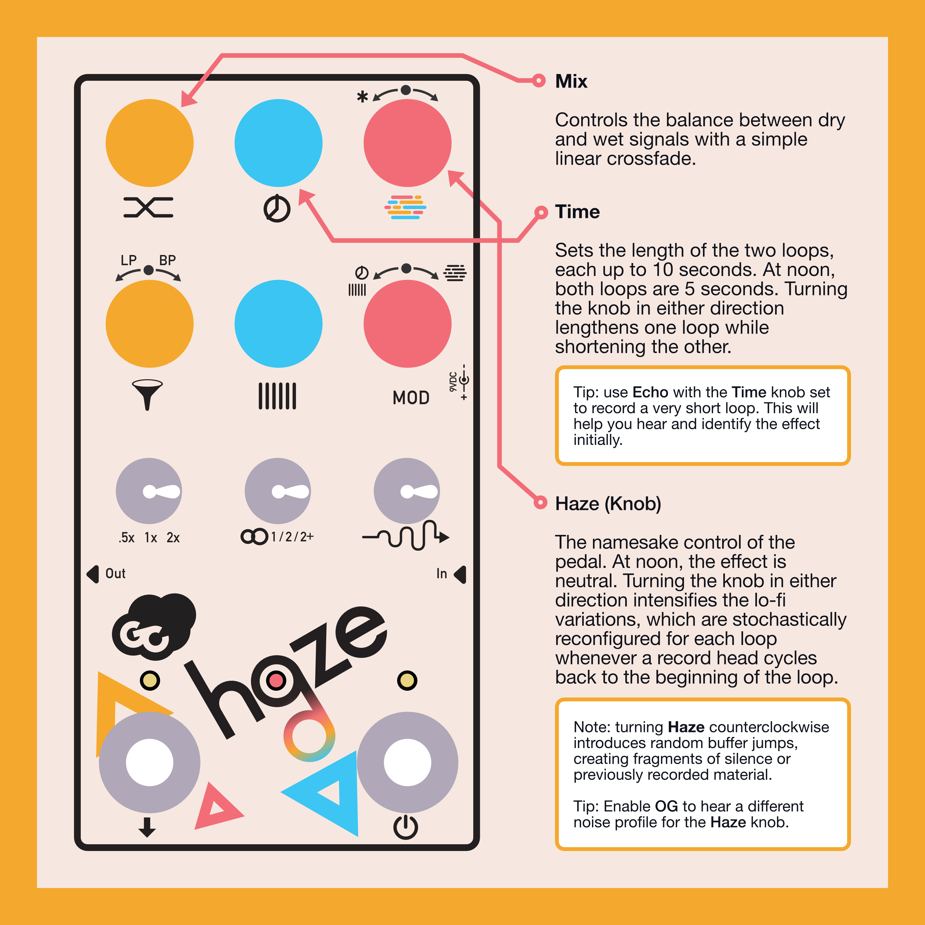 Time fluidity. Haze wanders and drifts fearlessly as play and record heads drift out of sync. Suturing can be done mildly (OG on) or more aggressively (OG off).